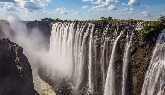 Die Victoriafälle selbst sind der perfekte, donnernde Abschluss dieser Reise. Auf einer Breite von 1,7 Kilometern stürzen die Wassermassen des Zambezi in die Tiefe. Die Gischt – der "Rauch, der donnert" (Mosi-oa-Tunya) in lokaler Sprache – steigt so hoch auf, dass sie einen kleinen Regenwald entstehen lässt. Stehen Sie so nah wie möglich an der Kante (natürlich mit Sicherheitsabstand!) und lassen Sie sich von der Kraft der Natur überwältigen.