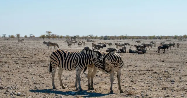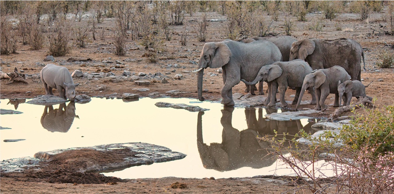 Wir verbringen weitere Tage im Etosha-Nationalpark und erkunden die riesige Salzpfanne, von der der Park seinen Namen hat. Hier sieht man Hunderte von Tieren. Wir sind besonders beeindruckt von den großen Herden der Gnus und Antilopen. Die Weite ist atemberaubend, es fühlt sich an, als ob die Welt nur aus Tieren und Himmel besteht.