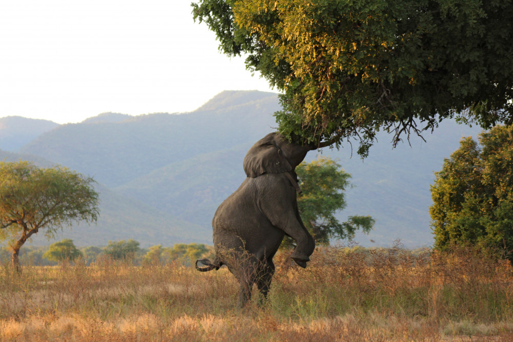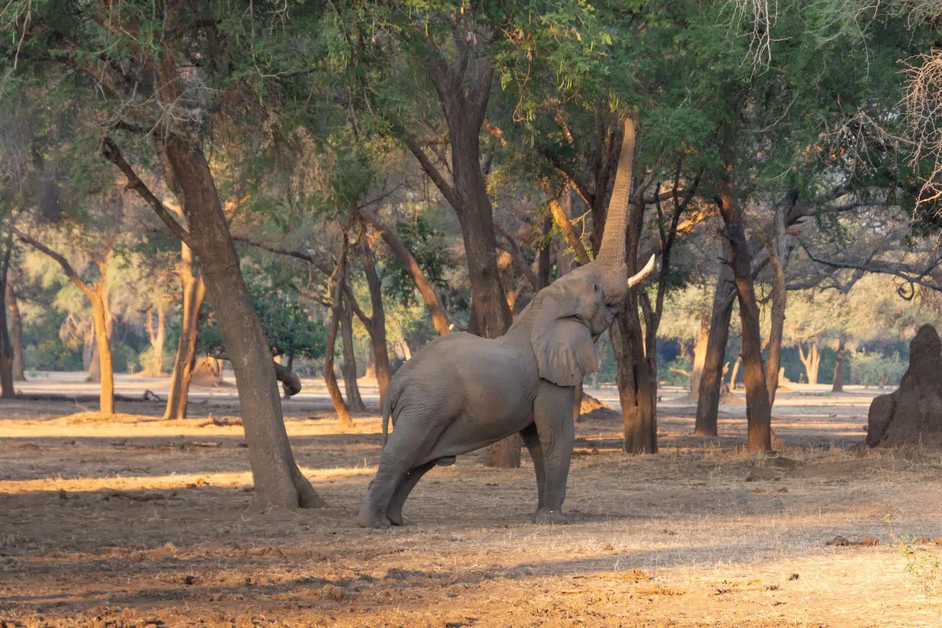 Mana Pools ist die Heimat der mutigsten und erfahrensten Guides Afrikas. Es ist einer der wenigen Parks weltweit, in dem man Raubtieren und Elefanten zu Fuß begegnen darf. Legendär ist der Elefantenbulle Boswell, der dafür bekannt ist, sich auf seine Hinterbeine zu stellen, um an die nahrhaften Schoten der Akazienbäume zu gelangen – ein Anblick, den Sie so nur hier erleben können. Neben Elefanten ist der Park ein Refugium für Löwen, Leoparden und die stark bedrohten Afrikanischen Wildhunde.