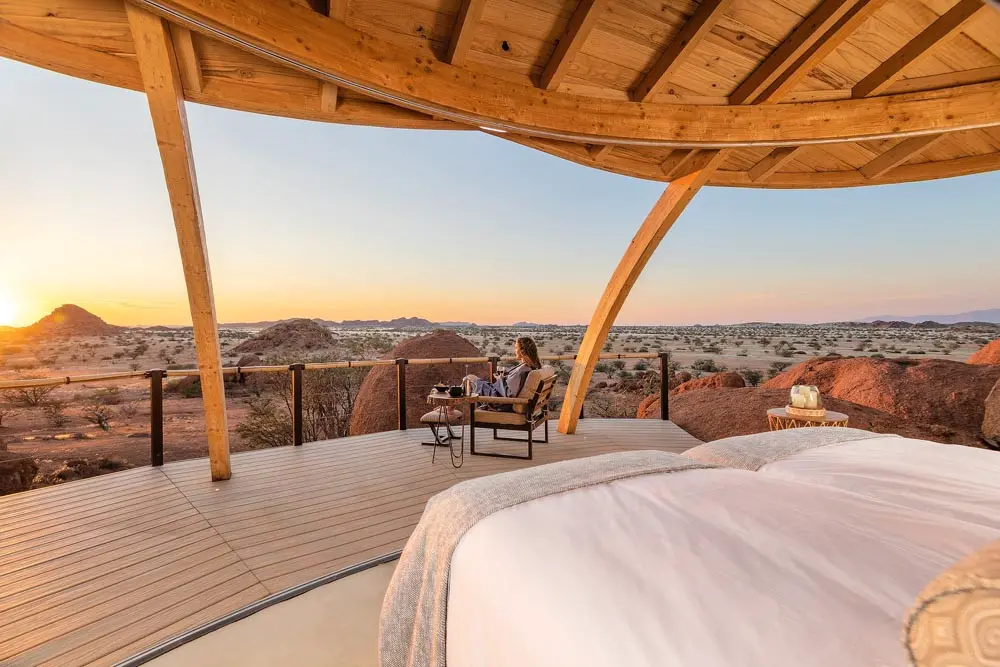 Nach einem ausgedehnten Frühstück starten Sie in Richtung Damaraland, wo Sie am frühen Mittag landen werden. Die Ondili Ridge Lodge liegt im Schutzgebiet von Twyfelfontein zwischen den Flüssen Ugab und Huab. Die Anlage aus luxuriösen Chalets wurde unauffällig in die Landschaft eingepasst, um möglichst wenig störende Einflüsse auf die Umgebung auszuüben. Entdecken Sie inmitten der Felsen einen Swimming Pool, in dem Sie sich von der Hitze des Tages bei einem Drink erholen und die atemberaubende Aussicht genießen können. Hier bieten sich optimale Möglichkeiten zur Entspannung und Erholung!