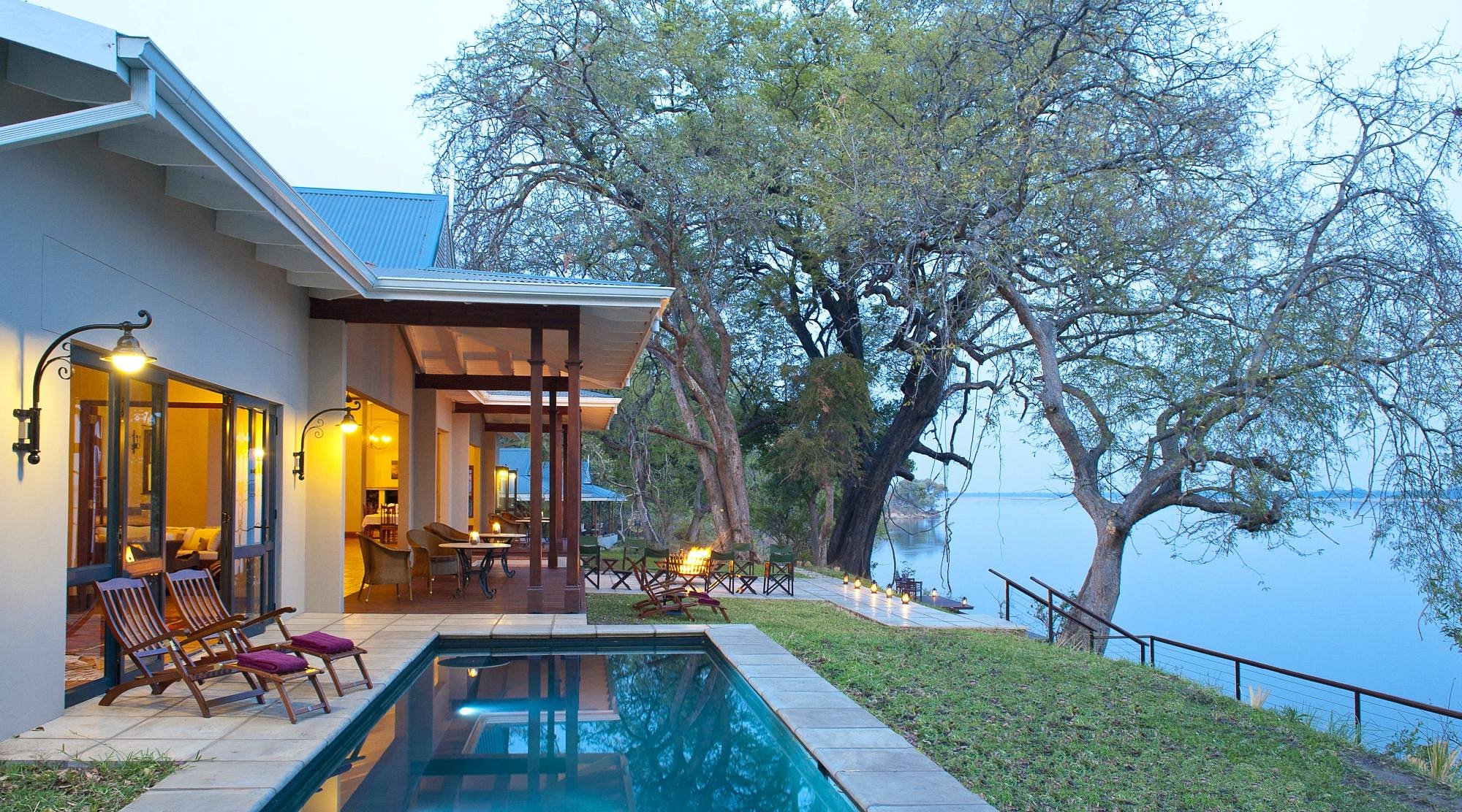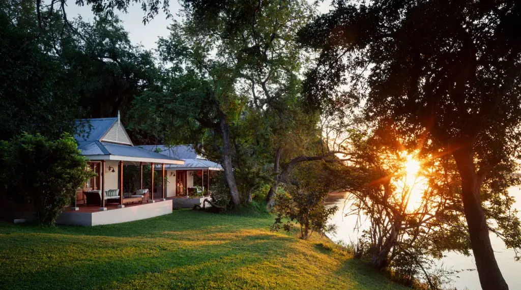 Die luxuriösen Suiten bieten Platz für zwei Personen und verfügen über ein großzügiges Schlafzimmer mit Klimaanlage, ein eigenes Bad sowie eine private Veranda mit Blick auf den Sambesi-Fluss. Hochwertige Möbel und dezente afrikanische Dekoration schaffen eine stilvolle Atmosphäre.