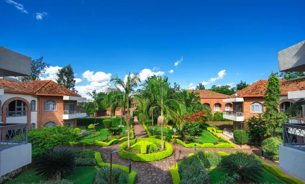 In der näheren Umgebung finden sich zahlreiche Sehenswürdigkeiten wie das Kigali Genocide Memorial, der Kimironko-Markt oder das Inema Arts Center. Das Hotel selbst liegt eingebettet in gepflegte Gärten mit Blumen und schattenspendenden Bäumen, was für eine ruhige Oase inmitten der Stadt sorgt.