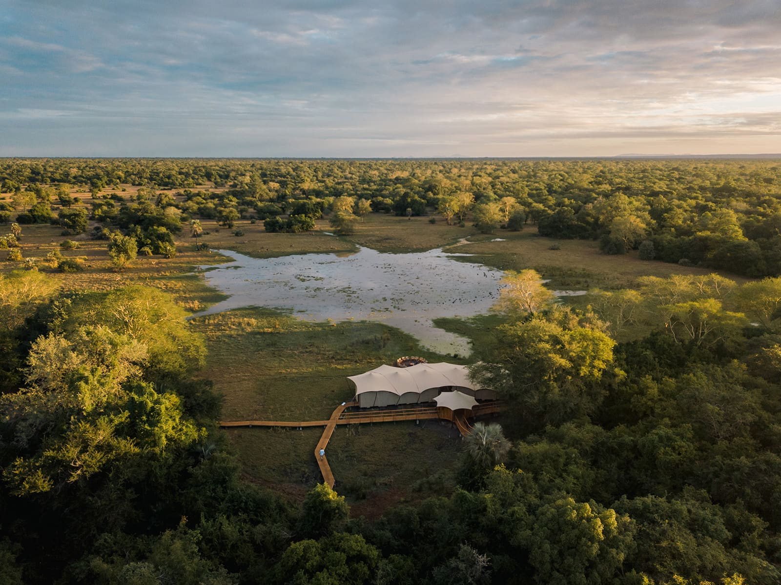 Das Chicari Camp ist ein neu erbautes, saisonales Safari-Camp im Gorongosa Nationalpark, Mosambik. Es kombiniert einen modernen Standard mit einem minimalen ökologischen Fußabdruck (Low-Impact). Der Name leitet sich von „Chicari“ ab, dem traditionellen Tongefäß für Trinkwasser – passend dazu überblickt das Camp eine natürliche Senke (Pan), die das ganze Jahr über Wasser führt und ein Magnet für die Tierwelt des Parks ist. Hier erleben Gäste die ungezähmte Wildnis in einer Atmosphäre von schlichter Raffinesse und tiefer Ruhe.
