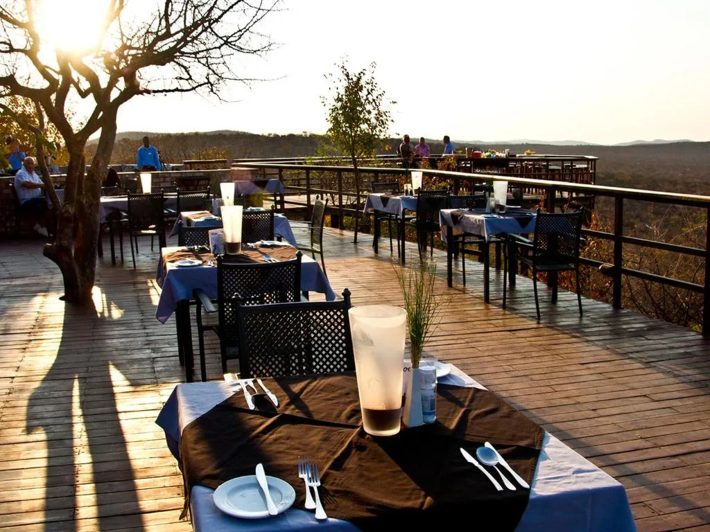 Die Mahlzeiten werden in einem offenen Speisesaal serviert, der einen Panoramablick auf die Savanne bietet. Morgens erwartet Besucher ein reichhaltiges Frühstücksbuffet mit Optionen wie frischem Obst, Gebäck und warmen Speisen. Abends sorgt das À-la-carte-Menü für kulinarische Vielfalt, ergänzt durch eine Auswahl an Weinen aus südafrikanischen Anbaugebieten.