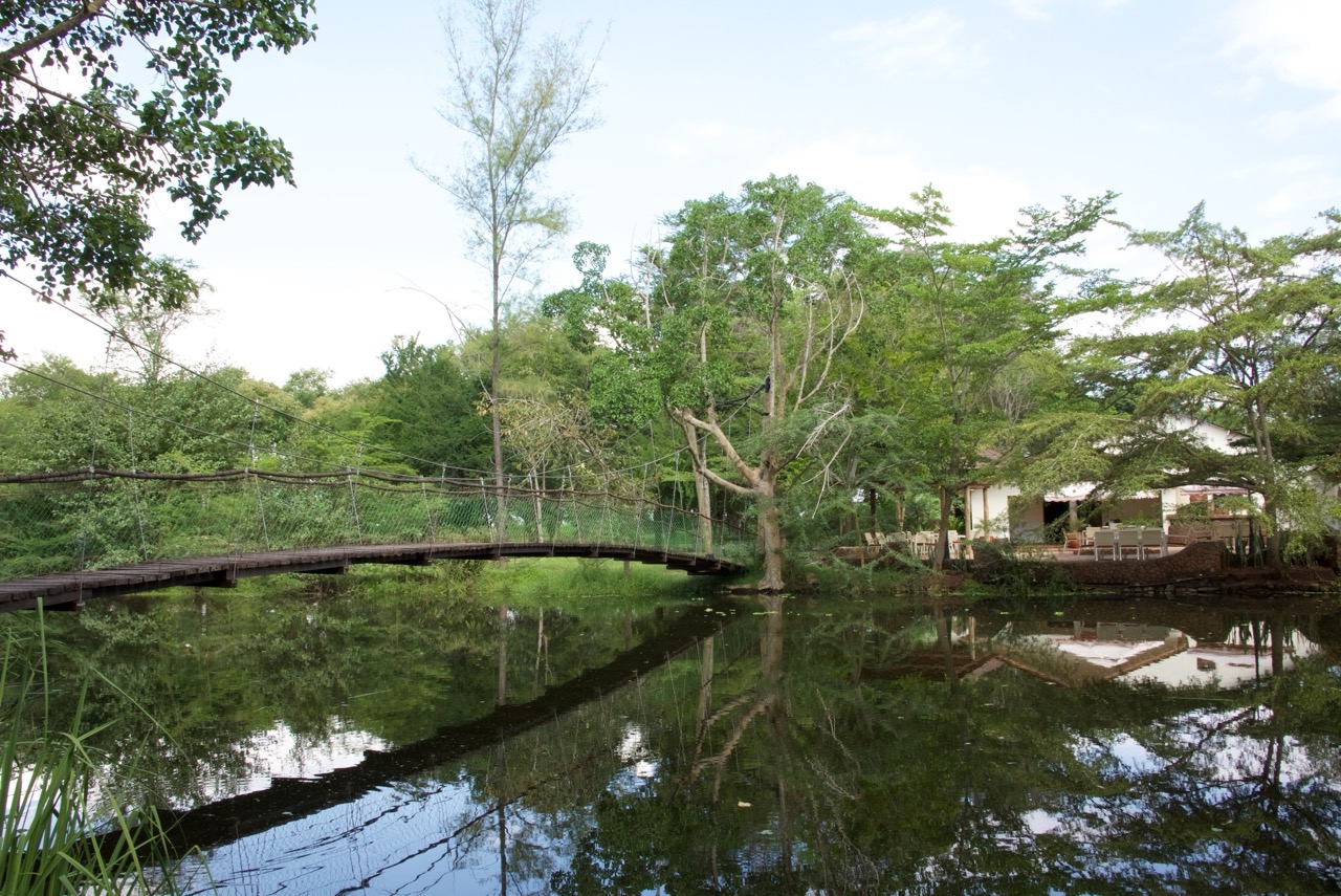Das Besondere an der Hunters Lodge ist ihre Lage an einer natürlichen Quelle. Das Anwesen erstreckt sich über weitläufige, üppige Gärten mit riesigen, alten Bäumen, die einen starken Kontrast zur trockenen Umgebung der Akamba-Ebenen bilden. Der Kiboko-Fluss zieht eine beeindruckende Vielfalt an Vögeln an (über 100 Arten wurden hier gesichtet), was die Lodge zu einem Paradies für Ornithologen macht.
