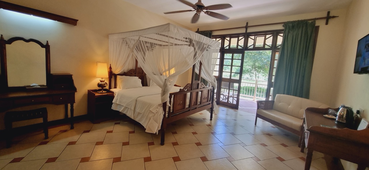 - Ausstattung: Alle Zimmer verfügen über ein eigenes Badezimmer (En-suite), Moskitonetze und eine private Veranda, auf der man die friedliche Atmosphäre genießen kann.