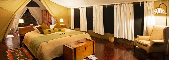 Das Karen Blixen Camp bietet eine Vielzahl an luxuriösen Unterkunftsmöglichkeiten, die den Gästen ein unvergleichliches Safari-Erlebnis ermöglichen. Die eleganten Zelte sind geschmackvoll eingerichtet und verfügen über private Veranden mit Blick auf den Mara-Fluss. Jedes Zelt ist mit einem eigenen Badezimmer ausgestattet, das sowohl Komfort als auch Privatsphäre garantiert. Hochwertige Möbel und traditionelle afrikanische Dekorationen schaffen eine warme Atmosphäre.