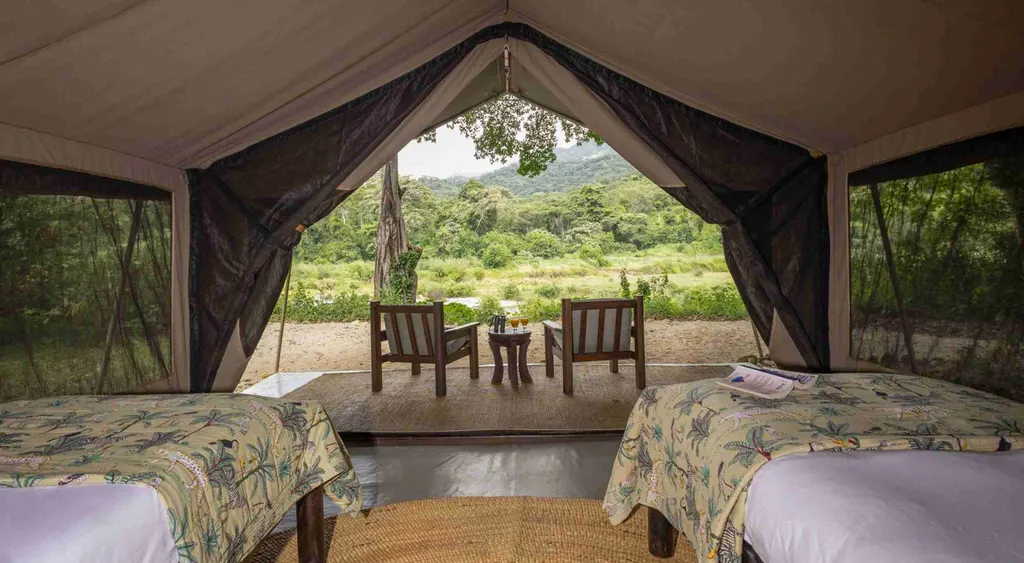 Das Kitich Forest Camp bietet sechs geräumige Safarizelte mit eigenem Bad, darunter Spültoiletten und traditionelle Eimerduschen. Jedes Zelt verfügt über eine private Veranda mit Blick auf den Ngeng-Fluss. Die Einrichtung ist schlicht und komfortabel, mit Holzbetten, Teppichen und Solarbeleuchtung.