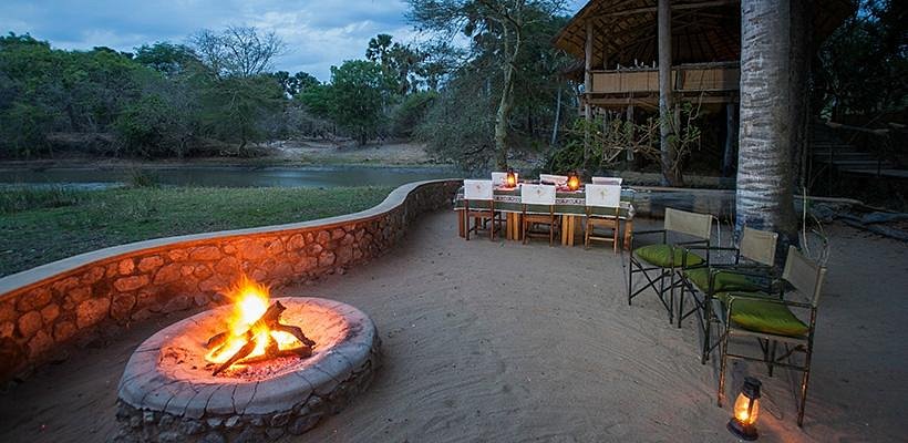 Das Restaurant befindet sich unter einem reetgedeckten Dach mit offenem Design, sodass man während der Mahlzeiten den Blick auf den Fluss genießen kann. Die Küche serviert eine Mischung aus internationalen Gerichten und lokalen Einflüssen, wobei frische Zutaten verwendet werden. Die Bar und der Loungebereich bieten den perfekten Rahmen für einen Sundowner, während man das Treiben der Flusspferde in der Lagune beobachtet. Ein kleiner Pool sorgt an heißen Tagen für Abkühlung.