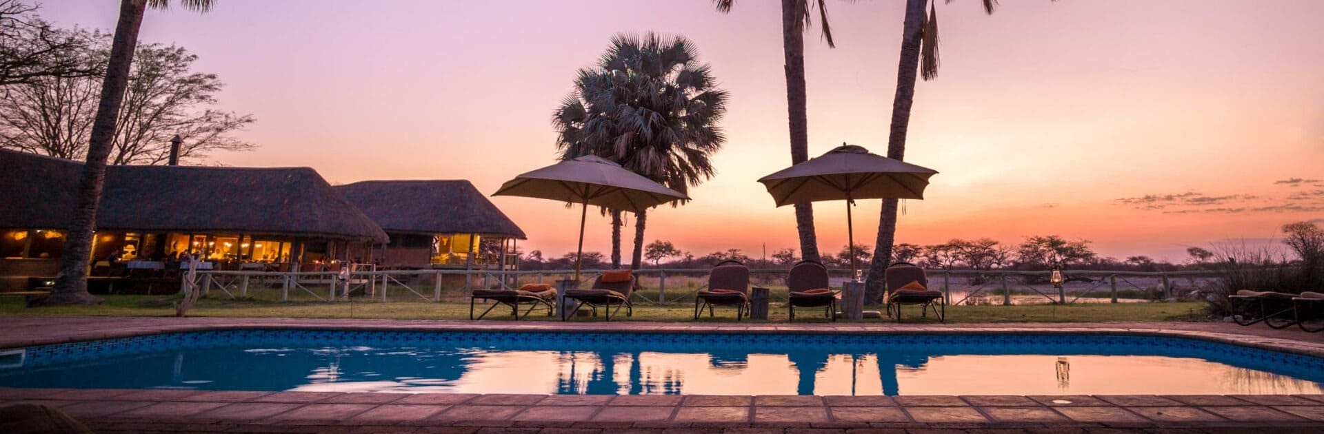 Sundowner-Fahrten bieten einen entspannten Ausklang des Tages. Bei Sonnenuntergang genießen Besucher im Pool Getränke inmitten der Savanne mit Blick auf spektakuläre Landschaften.