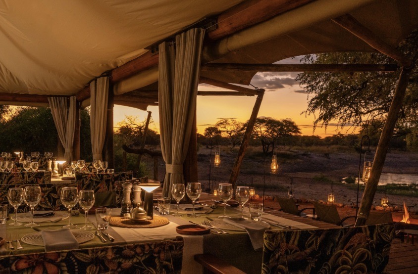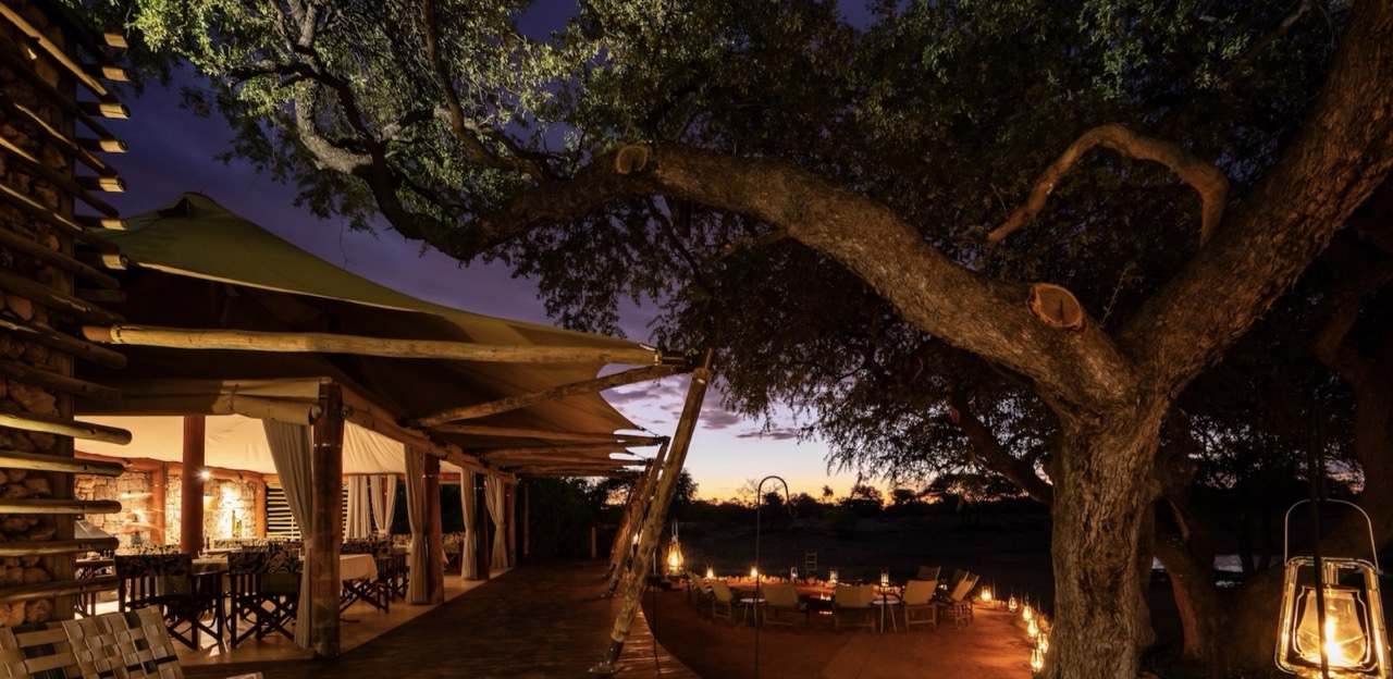 Das offene Hauptgebäude beherbergt das Restaurant und die Bar, die beide einen direkten Blick auf das Wasserloch bieten. Die Küche serviert Gourmet-Menüs, die lokale Zutaten mit internationalem Flair verbinden. Ein besonderes Highlight ist das Abendessen auf der Terrasse unter dem afrikanischen Sternenhimmel, während im Hintergrund die Geräusche der Wildnis zu hören sind.