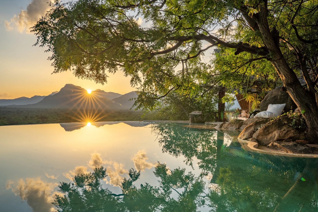 - Privater Pool: Ein herrlicher Infinity-Pool bietet Abkühlung mit Blick auf die Berge und die vorbeiziehende Tierwelt.