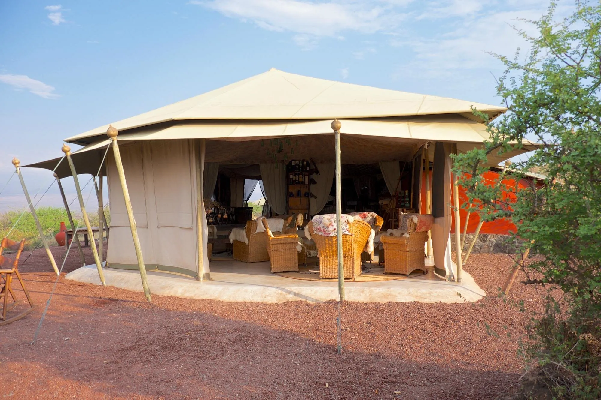 Das Shu’mata Camp verfügt über fünf luxuriöse Zelte im ostafrikanischen Stil, die auf einer Anhöhe errichtet wurden und einen Panoramablick auf den Kilimandscharo bieten. Jedes Zelt ist ausgestattet mit:
