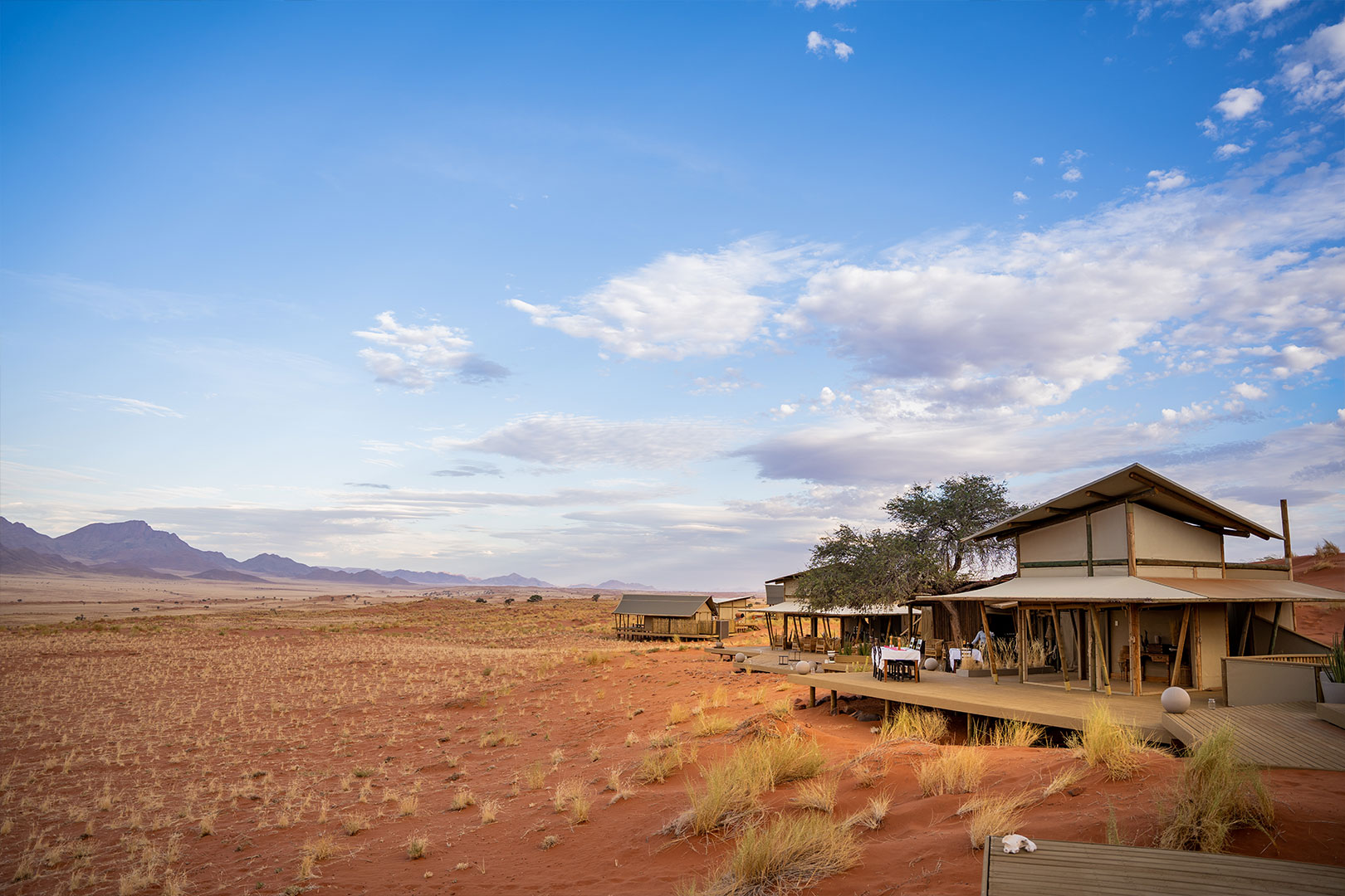 Das Camp befindet sich im NamibRand Nature Reserve im Südwesten Namibias. Es ist auf einer hohen Düne errichtet und bietet einen spektakulären Ausblick über die roten Sandmassen und die weiten Ebenen des Reservats. Die abgeschiedene Lage garantiert ein Höchstmaß an Privatsphäre und ein intensives Erleben der unberührten Wüstenlandschaft.