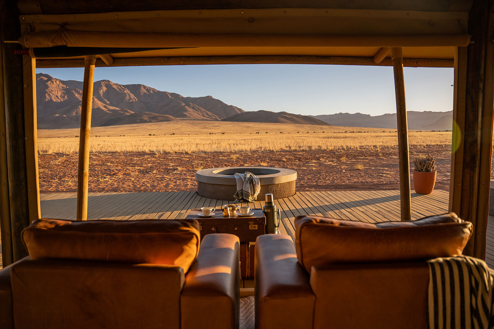 Das Camp liegt inmitten des privaten NamibRand Nature Reserve im Südwesten Namibias. Es befindet sich auf einer weiten Ebene und bietet einen unverbaubaren Blick auf die charakteristischen roten Sanddünen und die majestätischen Berge der Namib. Die Umgebung ist geprägt von einer beeindruckenden Ruhe und einer Tierwelt, die sich perfekt an die extremen Bedingungen der Wüste angepasst hat.